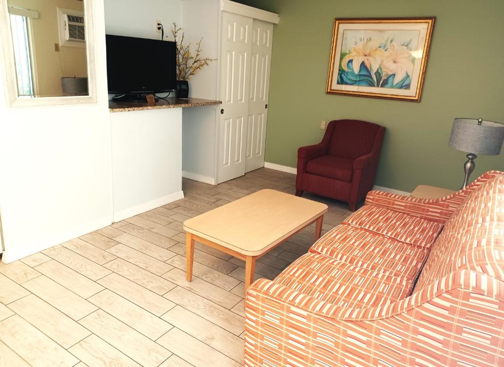 Guests can enjoy a flat screen TV and free Wi-Fi during their stay. We can accommodate up to 2 guests in our efficiency rooms.